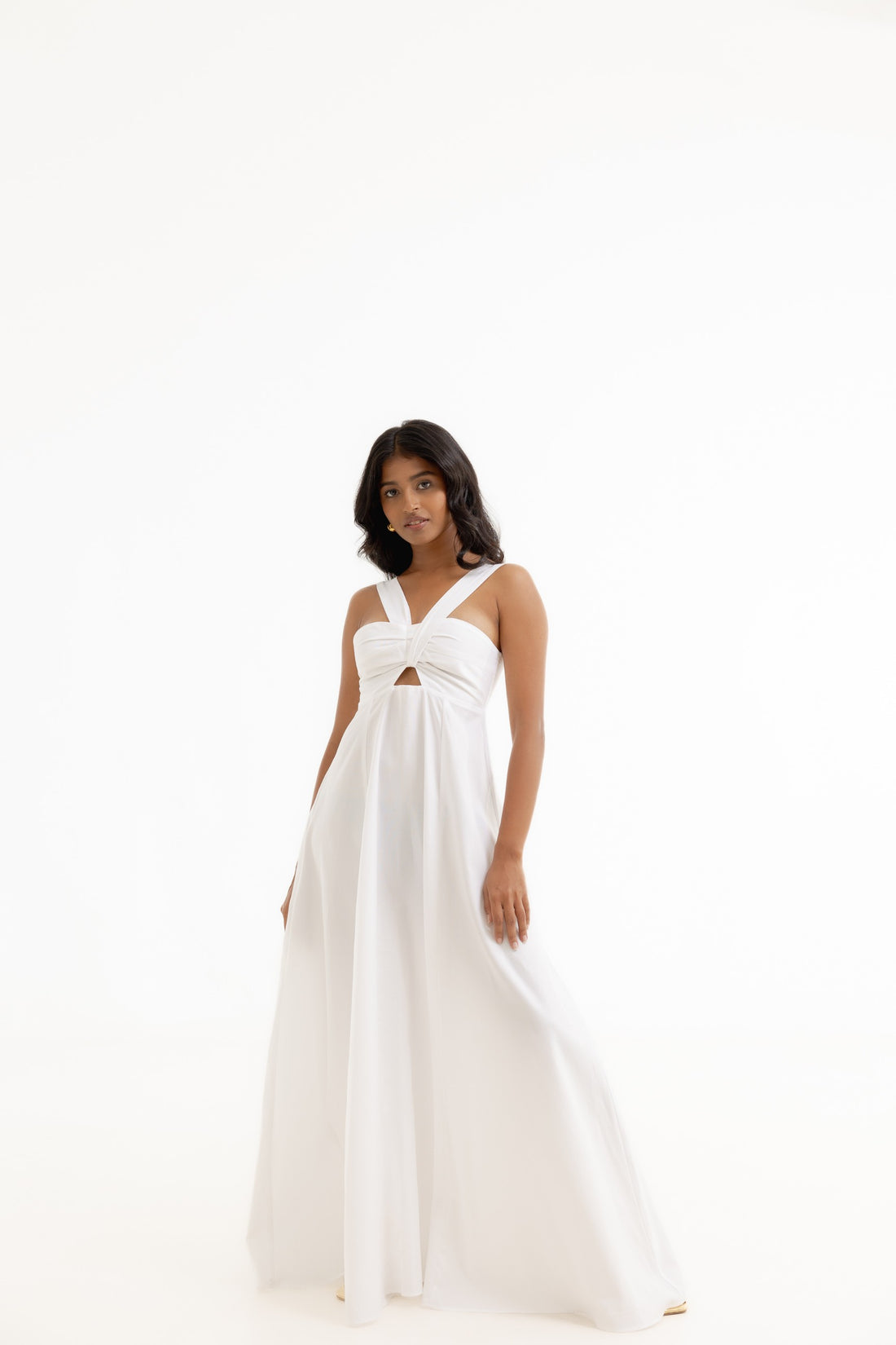Halter neck with cut out detail at mid riff. For varied bust sizes there's an...