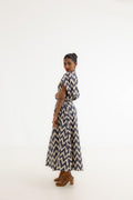 One Shoulder Top with Elasticated waistband - Denim Blue / White Print