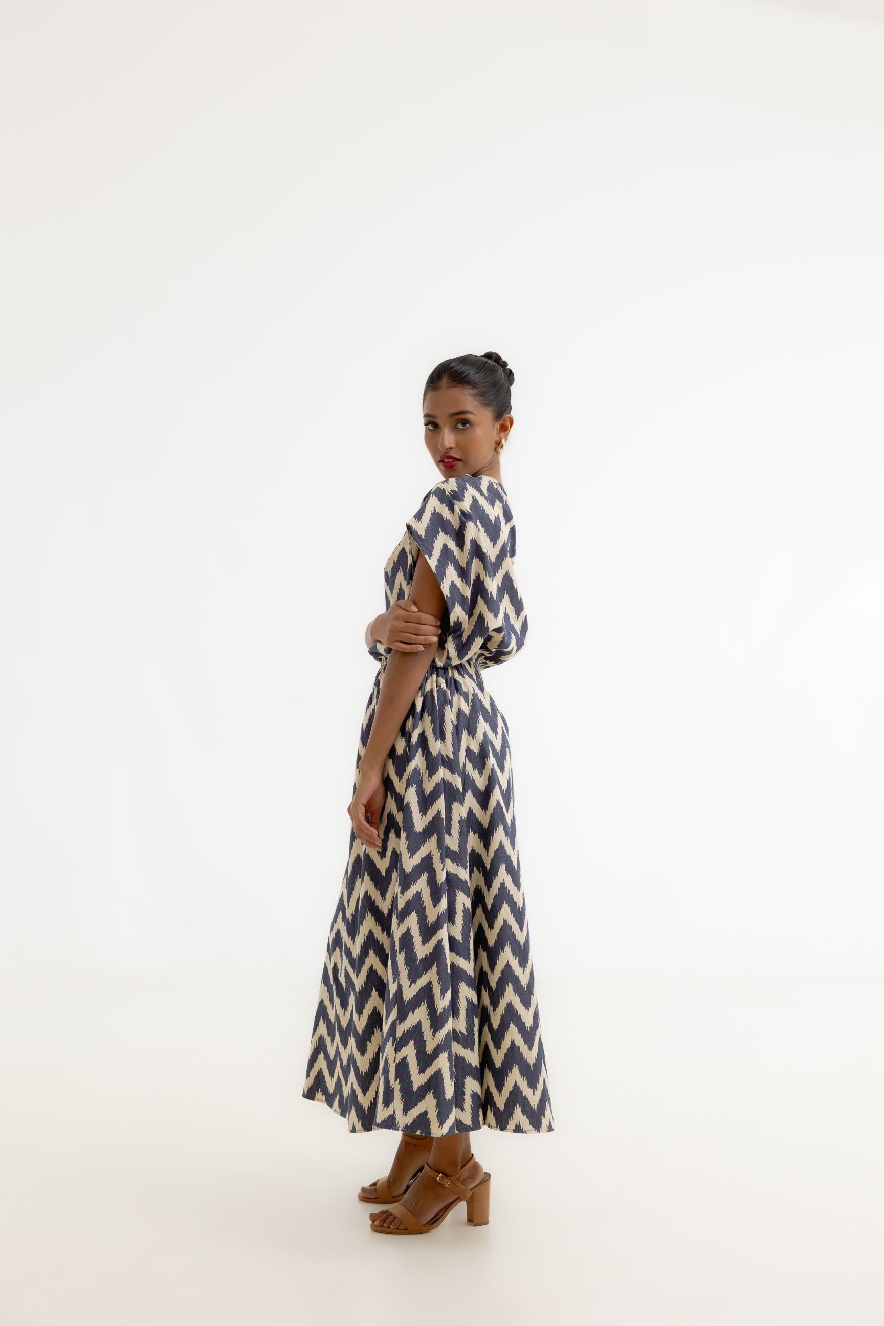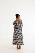 One shoulder neckline with an elasticated hem for easy adjustment on length